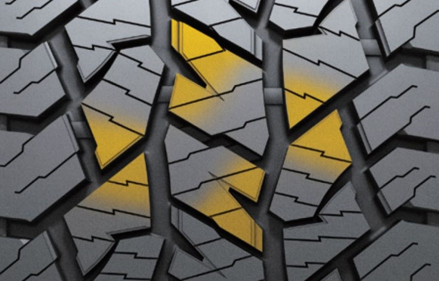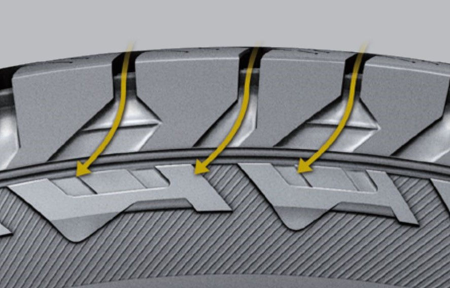 Die eingekerbten Laufflächenrillen sorgen für besseren Grip und sind bei Schnee sehr effektiv